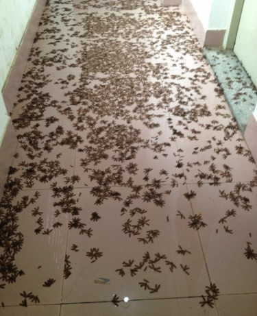 華南理工大學學生在新浪微博上感嘆,飛蟻數量居然多到讓小伙伴不慎品嘗了一只。大家紛紛用書本等拍打,有同學甚至想在宿舍養(yǎng)青蛙。